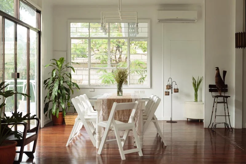Our grandparents former masters bedroom turned dining area can fit a table of 8 persons.