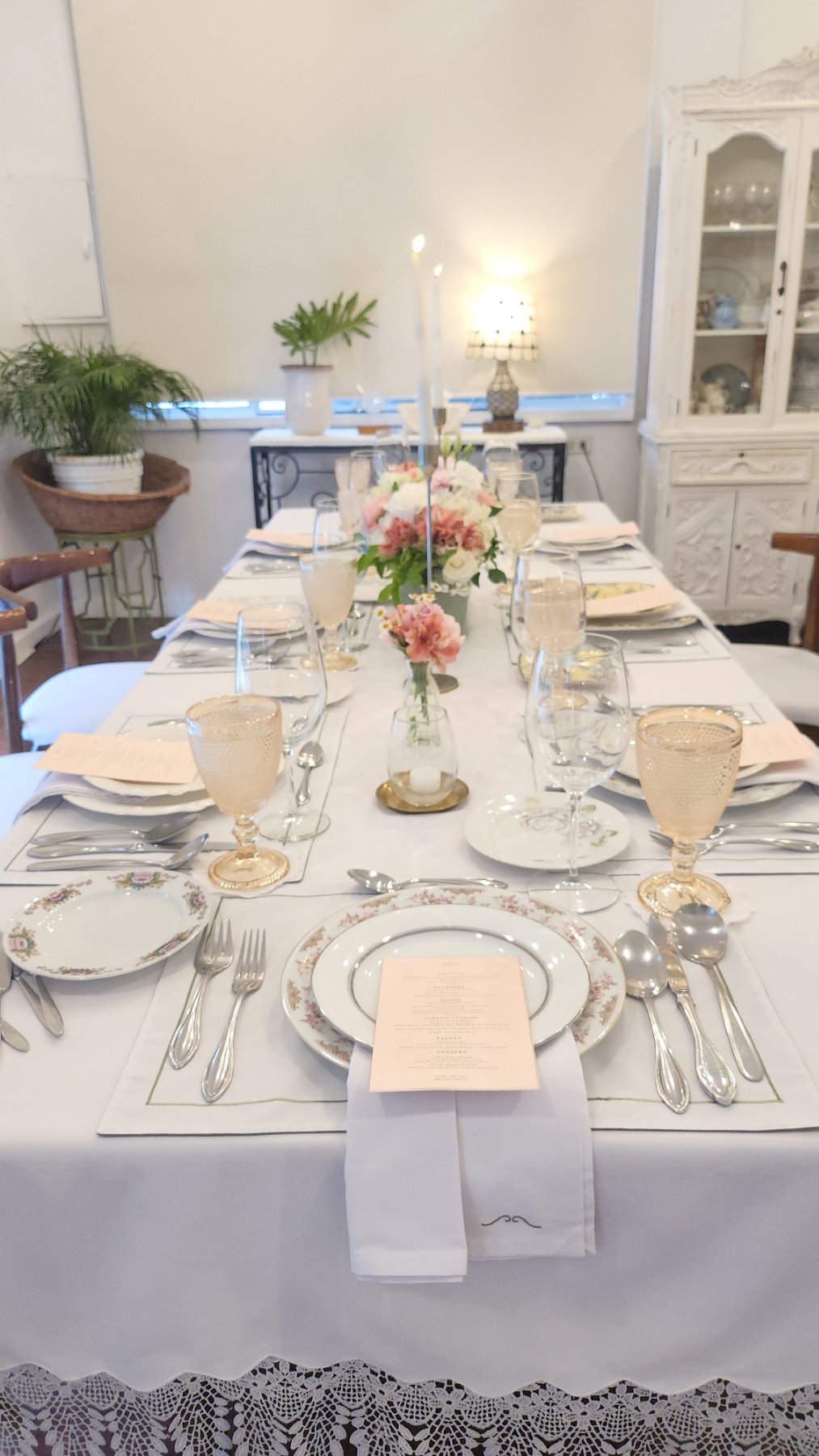 This part of the dining area adjoins Lolo's room. The table under the vintage lamps can fit 6 persons and the table in Tina's Room can fit 8 persons.