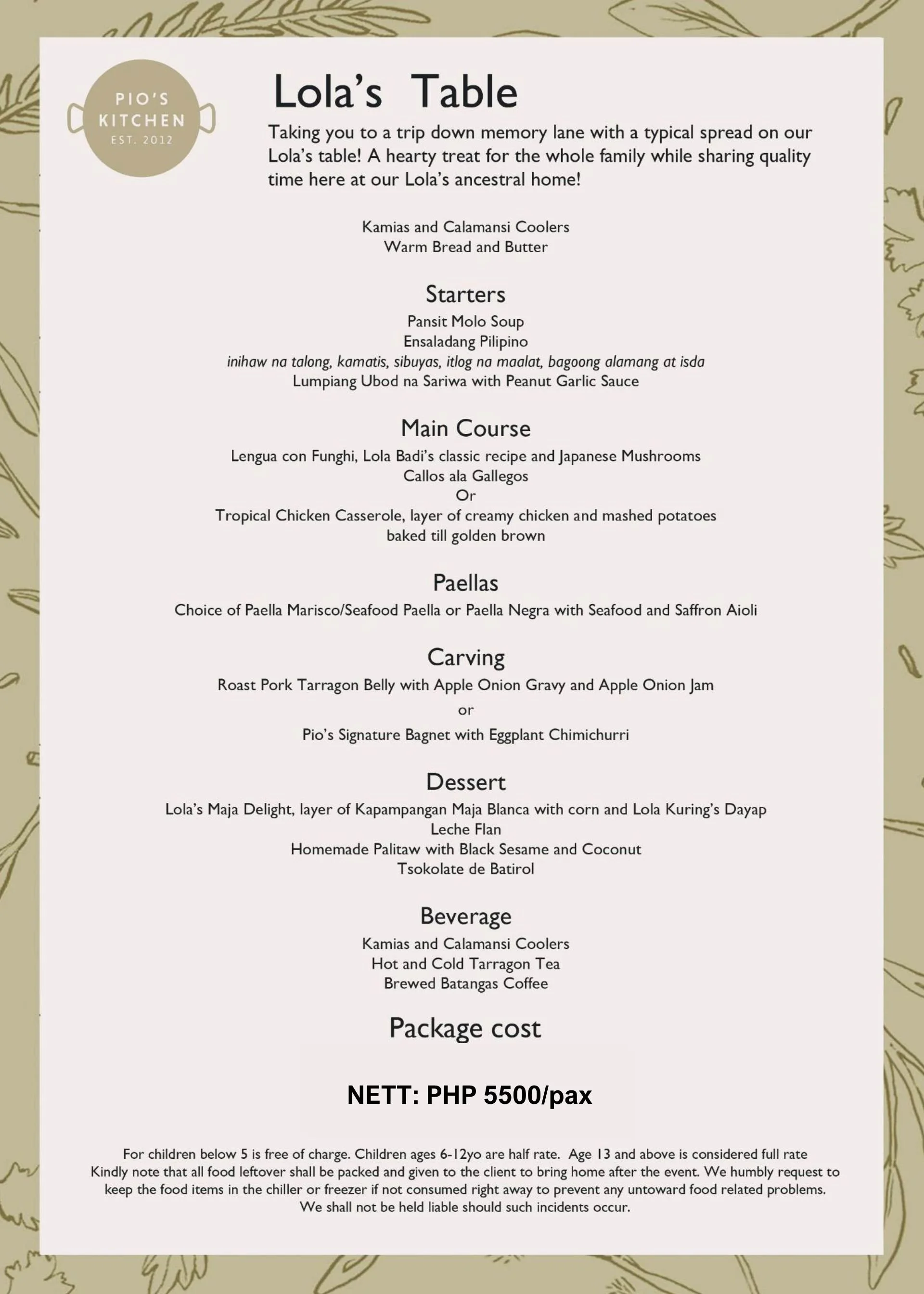 For bigger groups, kindly contact us at pioskitchenph@gmail.com or at 09175322892 for further details and rates.