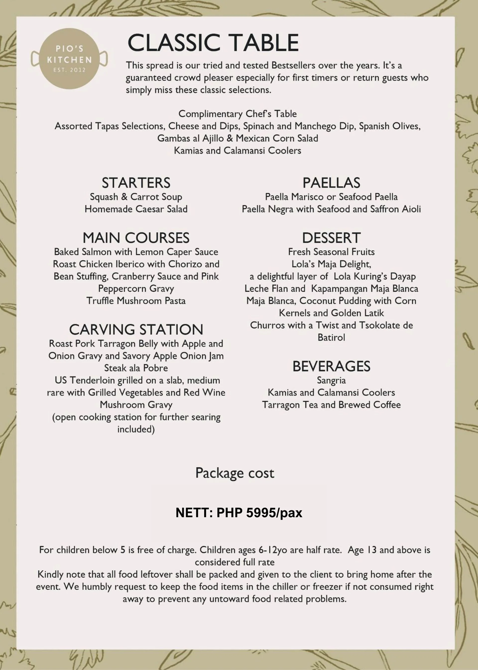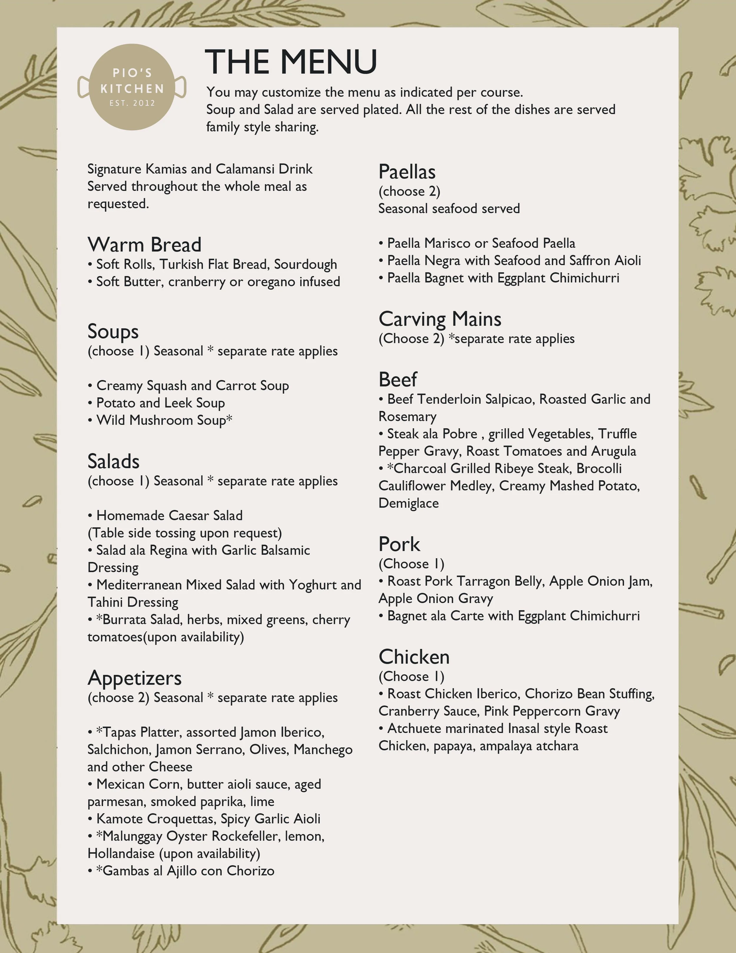 You may customize the menu according to your preference. However, rates are fixed according to the number of guests.